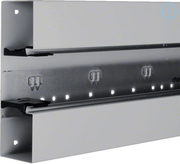 Brüstungskanal-Unterteil frontrastend Stahl BRS 70x210mm Oberteil 80mm lichtgrau. Kanalunterteil zum Elektro-Installationskanal-System Brüstungskanal aus Stahlblech nach DIN EN 50085-1 als Geräteeinbaukanal. Mit Bodenlochung zur direkten Wandmontage und zusätzlicher Rechtecklochung zur werkzeuglosen Befestigung des Kanals mittels Clip-Technik auf Konsolen. Mit frontrastendem, werkzeuglosem Geräteeinbau zur Befestigung von Geräten, Geräteeinbaudosen mit Schnellbefestigung. Bei Oberteilbreite 120 mm C-Profil Geräteeinbau. Kupplungen zum Potenzialausgleich sowie zur einfachen und passgenauen Kanalverbindung, Trennwände und Leitungsrückhalteklammern als Zubehör erhältlich. Hinweis: Potenzialausgleichs-, Erdungs-, Schall- und Brandschutz-Maßnahmen sind fachgerecht auszuführen.