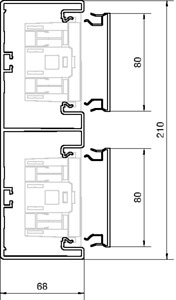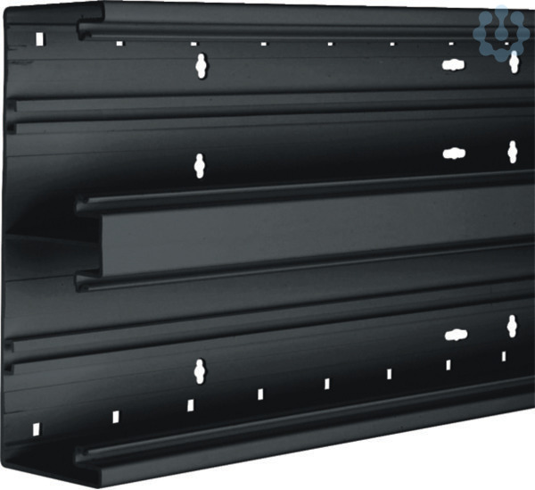 Brüstungskanal-Unterteil frontrast BR 68x210mm OT 2x80mm aus PVC graphitschwarz. Kanalunterteil zum Elektro-Installationskanal-System Brüstungskanal aus Kunststoff nach DIN EN 50085-1 als Geräteeinbaukanal mit Oberteilbreite 80 mm zum Einbau handelsüblicher Geräte ohne Zusatzblenden. Mit fester Zwischenwand zur Systemtrennung. Mit Bodenlochung (allseitiger Bohrtolleranzausgleich) zur direkten Wandmontage und zusätzlicher Rechtecklochung zur werkzeuglosen Befestigung des Kanals mittels Clip-Technik auf Konsolen. Mit frontrastendem, werkzeuglosem Geräteeinbau zur Befestigung von Geräten und Geräteeinbaudosen mit Schnellbefestigung. Zusätzliches C-Profil als Geräteeinbaumöglichkeit. Kupplungen zur einfachen und passgenauen Kanalmontage, Trennwände und Leitungsrückhalteklammern als Zubehör erhältlich. Hinweis: Schall- und Brandschutz-Maßnahmen sind fachgerecht auszuführen.