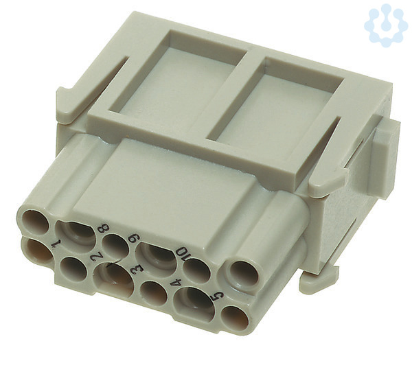 Han DD Modul, Crimpanschluss, Buchse, Kontakte: 12, Leiterquerschnitt: 0,14...2,5 mm², Bemessungsstrom: 10 A, Polycarbonat (PC), RAL 7032 (kieselgrau)