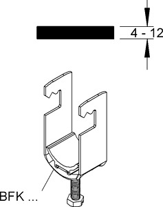 Bügelschelle, mit gezahntem Schellenfuß, mit Kunststoffdruckwanne aus PP, halogenfrei, Wanneneinlage bandverzinkt nach DIN EN 10346, Bügel tauchfeuerverzinkt nach DIN EN ISO 1461, für Flacheisen mit 4-12 mm Dicke, außerdem einsetzbar an vorhandenen Stahlkonstruktionen, Gegenwannen (GWU...) müssen gesondert bestellt werden. Belegung : 1 Kabel für Kabel-Ø : 64 - 70 mm