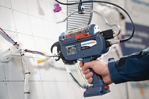 Elektrisch betriebenes und automatisiertes Kabelbündelungssystem. Stromversorgung durch Netzgerät CPK - Eingang: 100-240 V a.c., 50/60 Hz. Ausgang: 25,2 V d.c. max. 150 W. Integration in vollautomatisierte Fertigungsanlagen möglich (Netzgerät CPK mit Steuerbox). Zykluszeiten 0,8-1,2 Sekunden abhängig von Qualität und Kraft. Stationärer und flexibler Einsatz durch Vorrichtungen möglich. HT Data Management CPK Software (inklusive) - für umfangreiche Datenauswertung und Kontrolle des Abbindeprozesses. Bedienfreundliches Menü in vielen Sprachen inklusive. Prozesssicheres, beständiges und reproduzierbares Abbinden und Schneiden bis zu Ø 20 mm. Abnehmbarer Griff zur platzsparenden Integration. Das Autotool 2000 CPK ist ein elektrisch betriebenes und automatisiertes Bündelsystem, welches entwickelt wurde, um Abbindungen zu beschleunigen und die Produktion effizienter zu gestalten.Charakteristisch für das Autotool 2000 CPK ist die einfache Handhabung und die benutzerfreundliche Ergonomie. Es verfügt über ein Display