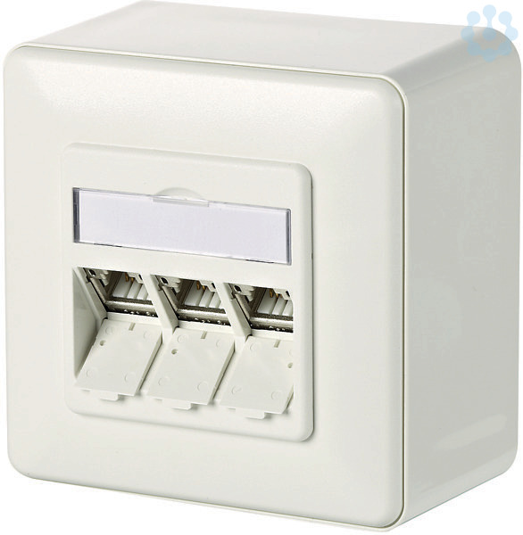 Aufputz-Anschlusseinheit mit C6, Amodul 180°, GHMT Cat.6, A re-embedded PVP zertifiziert, Cat.6, A Komponentenprüfung nach ISO/IEC 11801 Ed.2.2:2011-06, DIN EN 50173-1:2011-09, TIA/EIA-568-C.2 (2009-08) und IEC 60603-7-51 Ed.1 (12/2008), GHMT zertifiziert, Einhaltung der Klasse E, A bis 500 MHz nach ISO/IEC 11801 Ed.2.2:2011-06, DIN EN 50173-1:2011-09, getestet: Komponente bis 600 MHz, Link bis 800 MHz, für 10GBit Ethernet (IEEE 802.3an), Remote Powering (PoE, PoE plus, UPoE und 4PPoE) und HDBaseT geeignet, Anschluss von Datenleitungen AWG 26/1 - 22/1 (eindrähtig) und AWG 26/7 bis 22/7 (mehrdrähtig) an IDC-Schneidklemmen, Spezialwerkzeug-freie Migration auf 25G-Systeme, Steckrichtung des Moduls 45° nach unten geneigt, Zugentlastung mit Rastclip am Ladestück, mit Sichtfenster für beiliegende Beschriftungseinlage, Beschriftungsbogen 209 x 294 mm siehe Zubehör, integrierte Staubschutzklappen (auch farbig erhältlich), Abdeckteile reinweiß RAL 9010, Oberfläche matt strukturiert, Varianten: 1 Port, 2 Port, 3 Port