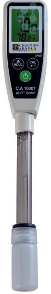 Der C.A 10001 hat die Form eines Füllers an dessen Ende sich die 12 cm lange pH-Elektrode mit integriertem Temperaturfühler befindet. Auf dem großen Display erscheinen gleichzeitig der pH-Wert und die Temperatur (in °C oder °F).