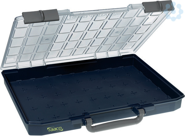 Carry-Lite 55 eine Individuelle Rastereinteilung erfolgt ohne Trennwände nur durch Einsatzfach 10 längst x 5 breit. Leichte und flexibel gestaltbare Aufbewahrungs- und Transportkoffer, Innenaufteilung jederzeit variierbar durch transparente Einlegefächer in vielen unterschiedlichen Größen, Koffer-Unterschale aus Polypropylen, Kofferdeckel aus klar-transparentem Polycarbonat, Deckel mit U-Profilen für verrutschsichere Aufbewahrung von Lagergut und loser Einsatzfach, ergonomischer Tragegriff, zwei stabile Schiebeverschlüsse, stapelbar, auch hochkant aufzustellen. leer ohne Einsätze 413x330x55mm