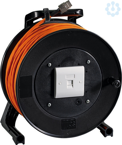 Robuste Spezialgummi-Kabeltrommel, komplett mit Cat.7 S/FTP Verlegekabel, integrierter Datendose Cat.6A 1 x RJ45 mit Staubschutzkappe und 1 x Cat.6A RJ45 Modul mit integrierter Knickschutztülle. Hervorragend geeignet für den mobilen Einsatz, für Messen, Präsentationen, Ü-Wagen, Meßstrecken, etc. Eine genormte Installationsstrecke gemäß Strukturierter Verkabelung Class EA / Cat.6A.