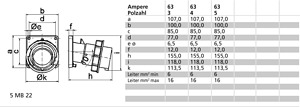 63A 4p (3P+PE) 400V (380 bis 415V) 6h IP67, Frequenz: 50 und 60Hz,