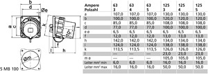 63A 5p (3P+N+PE) 400V (200/346 bis 240/415V) 6h IP67, Frequenz: 50 und 60Hz,