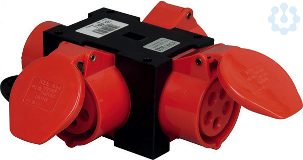 CEE-Kompaktverteiler, Eingang: CEE-Stecker, 5-polig,16A, 400V~, 6h Ausgang: 3x CEE-Steckdosen, 5-polig, 16A, 400V~, 6h, Schutzart IP44