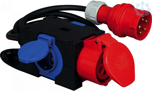 CEE-Kompaktverteiler, Eingang: CEE-Stecker, 5-polig, 16A,400V~, Ausgang: 1x CEE-Steckdose, 5-polig, 16A, 400V~, 2xSchutzkontakt-Steckdosen, 16A, 250 V~, Leitung: 1,5m,H07RN-F 5x1,5mm², Schutzart IP44