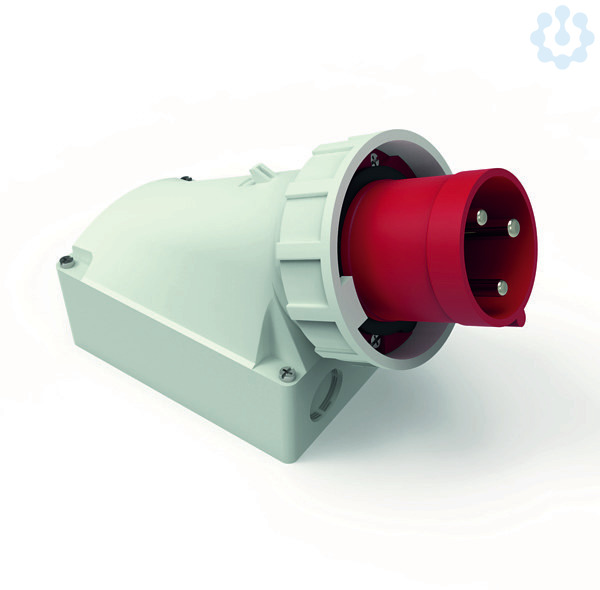 63A 3p (2P+PE) 400V (380 bis 415V) 9h IP67, Frequenz: 50 und 60Hz, Technische Kennfarbe: rot RAL 3000, Gehäusegröße: 170x118 mm (HxB), Kontaktträger/Kontakte: Der Kontaktträger ist aus hochwarmebeständigem Material, Die Kontakte sind Messing vernickelt, Maximaler Leiterquerschnitt: 16,0 qmm, Gehäusematerial: Polycarbonat, Anschlusstechnik: Schraubklemmen als Rahmenklemmen, Kabeleinführung: 1xM40 oben, 2xM32 unten, Gerätefarbe: Kragen rot RAL 3000, Bajonettring grau RAL 7035, Gehäuseunterteil grau RAL 7035, Gehäuseoberteil grau RAL 7035, Gerätehöhe: 259 mm, Gerätebreite: 118 mm, Gerätetiefe: 174 mm, Sonstige technische Eigenschaften: Die Leitungseinführung ist einmal oben offen und zweimal unten verschlossen, Das Gehäuseunterteil ist um 180° drehbar