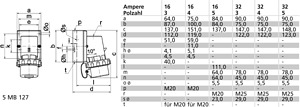 32A 5p (3P+N+PE) 400V (200/346 bis 240/415V) 6h IP67, Frequenz: 50 und 60Hz,