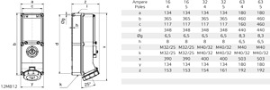 32A 4p (3P+PE) 400V (380 bis 415V) 6h IP67, Frequenz: 50 und 60Hz,