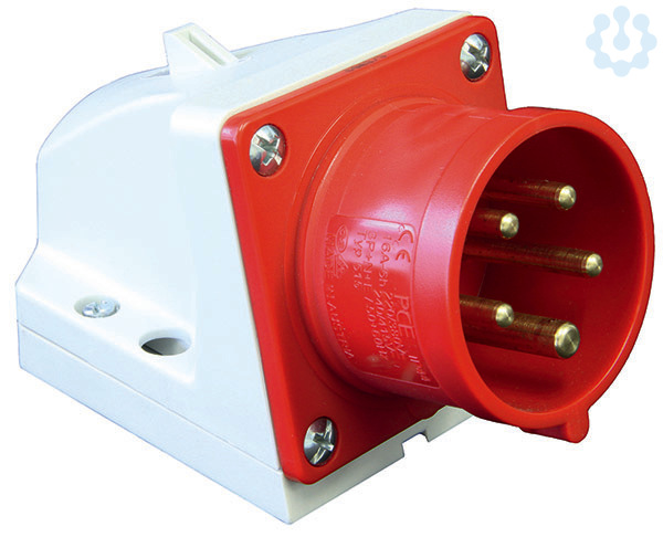 CEE Wandgerätestecker nach IEC 60309, EN 60309, VDE 0623, 15° geneigt, Schutzart spritzwassergeschützt IP44, 32A, 5-polig, Nennspannung 400V AC, 6h, rot, Leitungseinführung von oben oder hinten (M25), inklusive Würgenippel, mit unvernickelten Kontakten