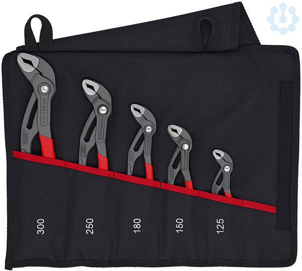 00 19 55 S5 KNIPEX Cobra®-Set Die KNIPEX Cobra® ist die legendäre Hightech-Wasserpumpenzange aus dem Hause KNIPEX. Mit ihrem enorm festen Selbstklemmeffekt ermöglicht sie kraftsparendes Arbeiten ohne Abrutschen am Werkstück. Jetzt als Set in verschiedenen Größen erhältlich in unseren langlebigen Rolltaschen mit passender Motivbestickung. Hochwertige Rolltasche aus strapazierfähigem Polyestergewebe. Mit Klettverschluss. Bestückt mit der KNIPEX Cobra® Hightech-Wasserpumpenzange in fünf verschiedenen Längen von 125 bis 300 mm. Abmessungen, geöffnet (L x H ): 430 x 325 mm. Lieferumfang: 1 x 87 01 125 KNIPEX Cobra® Hightech-Wasserpumpenzange, 1 x 87 01 150 KNIPEX Cobra® Hightech-Wasserpumpenzange, 1 x 87 01 180 KNIPEX Cobra® Hightech-Wasserpumpenzange, 1 x 87 01 250 KNIPEX Cobra® Hightech-Wasserpumpenzange, 1 x 87 01 300 KNIPEX Cobra® Hightech-Wasserpumpenzange,