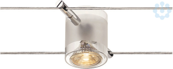 Aus Stahl und teilsatiniertem Glas bestehende Strahler COMET für das Niedervolt Seil-System. Durch den verbauten GU5,3 Sockel ist der Strahler für Halogen- sowie LED-Leuchtmittel geeignet. Der maximal kompatible Seilabstand beträgt 15,5cm.