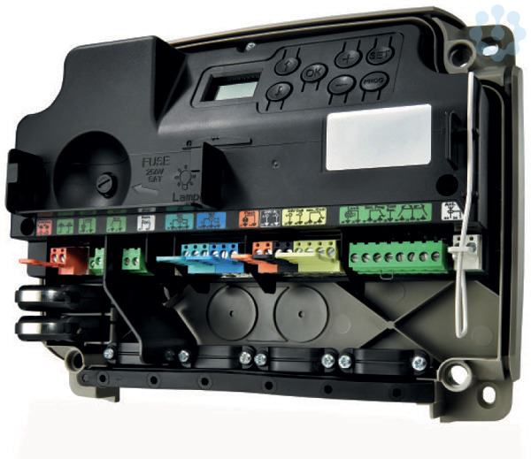 Control Box 3S Axovia io, ist eine werksseitig voreingestellte Steuerung für die Drehtorantriebe der Axovia Baureihe. Normgerechter Betrieb ist nach Selbstlernlauf gegeben. Intuitive Bedienung unterstützt durch LC-Anzeige. Verschiedenfarbige Anschlussbuchsen für eine fehlerfreie Installation. Rückinfo in Verbindung mit bidirektionalen Funkhandsendern. Programmierbarer Sicherheitseingang. Separate Steuerung von Voll-, Teilöffnungen, Umfeldbeleuchtung und potentialfreiem Ausgang möglich. Die Bedienung und Kontrolle kann lokal und aus der Ferne mit TaHoma® und Connexoon® Zugang erfolgen. Kompatibel mit Serve-E-Go Fernwartungs- und Diagnosetool für den Service. Lieferumfang: Control Box, Installations- und Bedienungsanleitung