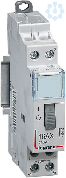 Legrand Fernschalter CX3, 2-polig, 16 A/ 250 VAC, mechanisch, Steuerspannung AC 230 V, 2 Schließer, Schaltzustandsanzeige am Handschalter, Handschaltung ON/OFF, Anbau von bis zu 2 Hilfsgeräten möglich, Fernschalter nach EN 60669-2-2.