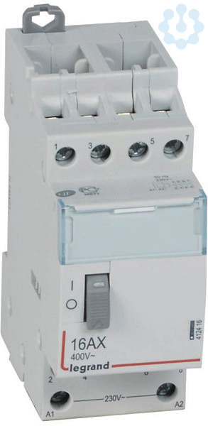 Legrand Fernschalter CX3, 4-polig, 16 A/ 250 VAC, mechanisch, Steuerspannung AC 230 V, 4 Schließer, Schaltzustandsanzeige am Handschalter, Handschaltung ON/OFF, Anbau von bis zu 2 Hilfsgeräten möglich, Fernschalter nach EN 60669-2-2.