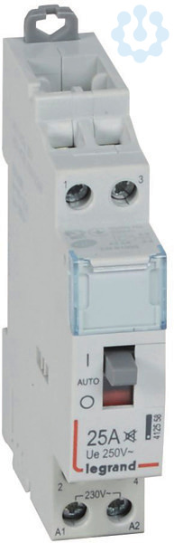 Legrand Installationsschütz CX3, Spulenspannung AC 230 V, 2-polig, Ausführung: 2 Schließer, Bemessungsbetriebsstrom Ie 25 A/ 250 VAC, brummfrei, mit Handschalter. Nach EN 61095, Gebrauchskategorie AC-1/AC-7a und AC-3/AC-7b, Installationsschütze zum Schalten von Lasten wie z.B. Lampengruppen, Motoren und Heizungen, mit Beschriftungsfenster, mit Schaltzustandsanzeige, Befestigung auf Hutprofilschiene EN 60715 durch rastende Schnellbefestigung, Anbau von Hilfsschaltern möglich.