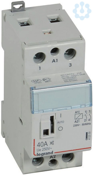 Legrand Installationsschütz CX3, Spulenspannung AC 230 V, 2-polig, Ausführung: 2 Schließer, Bemessungsbetriebsstrom Ie 40 A/ 250 VAC, brummfrei, mit Handschalter. Nach EN 61095, Gebrauchskategorie AC-1/AC-7a und AC-3/AC-7b, Installationsschütze zum Schalten von Lasten wie z.B. Lampengruppen, Motoren und Heizungen, mit Beschriftungsfenster, mit Schaltzustandsanzeige, Befestigung auf Hutprofilschiene EN 60715 durch rastende Schnellbefestigung, Anbau von Hilfsschaltern möglich.