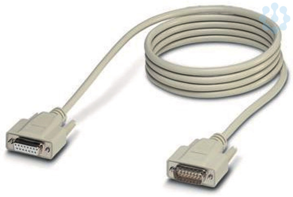 Konfektioniertes D-SUB-Kabel geschirmt, 15-polig, flexibel (7-drähtig), Kabelfarbe RAL 7000 (grau), Schutzart IP20, Kopf 1 mit Buchse Shell 2 und geraden Kabelabgang, Kopf 2 mit Stift Shell 2 und geraden Kabelabgang, Länge: 1 m
