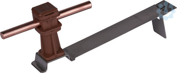 Dachleitungshalter FLEXIsnap mit gewinkelter flexibler Grundstrebe zur Befestigung von Fang- und Ableitungen für Dachflächen. Ausführung mit flexibler Grundstrebe aus dünnem NIRO (0,3 mm), zum Anformen an die Falze der Dachziegel / Dachsteine, mit Leitungshalter DEHNsnap Bauhöhe 16 mm, lose Leitungsführung, aus wetterbeständigem Kunststoff, UV-stabilisiert und halogenfrei.