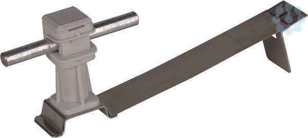 Dachleitungshalter FLEXIsnap mit gewinkelter flexibler Grundstrebe zur Befestigung von Fang- und Ableitungen für Dachflächen. Ausführung mit flexibler Grundstrebe aus dünnem NIRO (0,3 mm), zum Anformen an die Falze der Dachziegel / Dachsteine, mit Leitungshalter DEHNsnap Bauhöhe 16 mm, lose Leitungsführung, aus wetterbeständigem Kunststoff, UV-stabilisiert und halogenfrei.