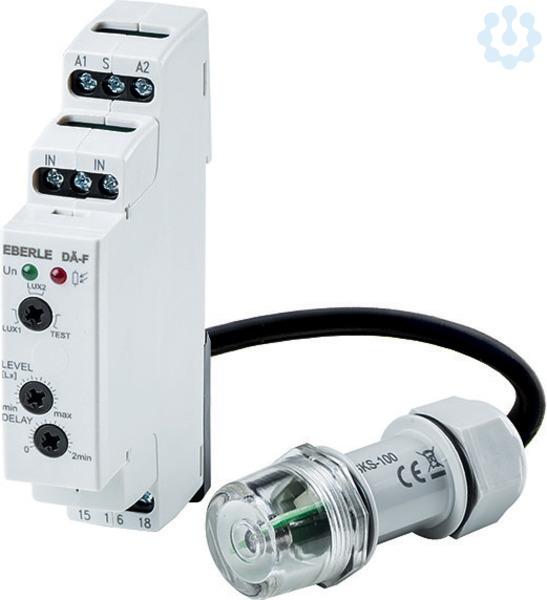 Dämmerungsschalter mit Fernfühler eignet sich für die Steuerung von Beleuchtungsanlagen wie z.B. Hausbeleuchtung, Hofbeleuchtung, Schaufensterbeleuchtung usw.. Steuergerät für Montage auf Tragschiene, wahlweise ca. 5...500 Lux oder 100...10.000 Lux einstellbar. Fernfühler wird ohne Anschlusskabel geliefert. Fühler mit 2x1,5 mm2 bis auf maximal 50 m verlängerbar. Mit Montageclip für Fernfühler. Die Verzögerung ist so ausgelegt, dass kurzzeitige Helligkeitsänderungen, wie z.B. Autoscheinwerfer oder Blitze, keinen Einfluss auf das Schaltverhalten haben.