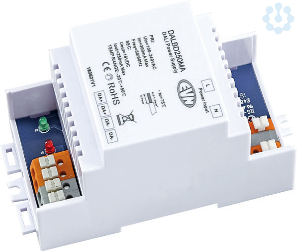 Die DALI-Basisstation verfuegt ueber 2 BUS-Ausgänge und einen max. Ausgangsstrom von 250mA, wodurch auch größere Leitungswege ohne Probleme realisiert werden können. Natuerlich ist die Basisstation kompatibel zu allen gängigen DALI-Komponenten. Die Klemmen, sowohl Primär- als auch sekundärseitig, sind fuer Kabel von 0,5mm². - 1,5mm². geeignet. Technische Daten: ta: -20°.C - 50°.C, tc: 75°.C. Konform Standardprotokoll IEC 60929.