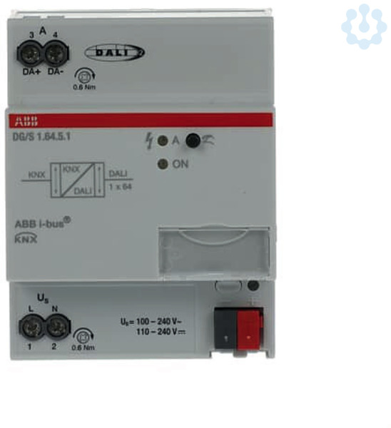 Zur Steuerung von DALI-Geräten über den ABB i-bus KNX. Ein/Zwei DALI-Ausgang/Ausgänge für bis zu 64/2x64 DALI-Slaves. DALI Netzteil ist integriert. Die Steuerung und Statusrückmeldung erfolgt über KNX pro DALI-Slave (64/2x64), mit Leuchtengruppen (16/2x16), gemeinsam im Broadcast oder pro Szene (16/2x16). DALI-Geräte vom Typ DT2 (autarker Notlichtkonverter nach EN 62386-202) und Typ DT8 (Farbtemperatur Tc/Tunable White nach EN 62386-209) werden unterstützt. Es stehen umfangreiche Fehler- und Fehlermeldungen zur Verfügung. Mit Hilfe von KNX und