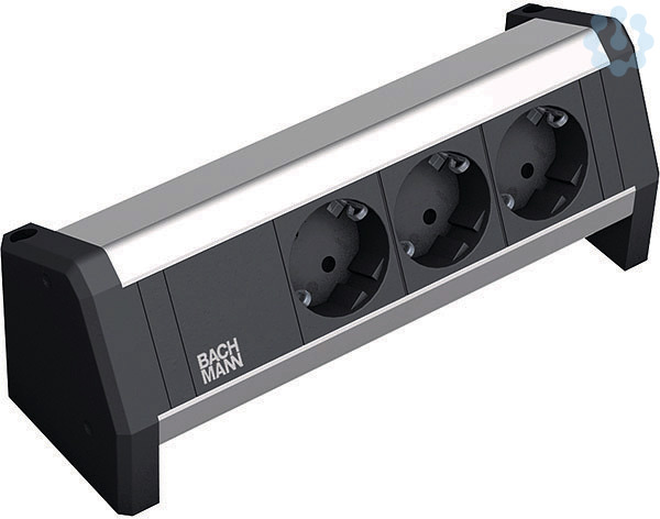DESK Steckdoseneinheit ALU 3xSchutzkontaktsteckdose schwarz mit erhöhtem Berührungsschutz Stromein- und ausgang: GST18 ohne Haltewinkel