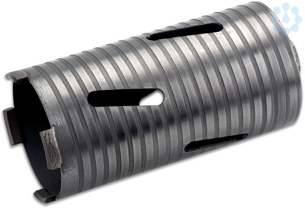 Diamant-Bohrkronen für Trocken- und Nassschnitt, passend zu allen handelsüblichen Diamanttrockenbohrmaschinen (Aufnahme M 16). Drehzahlempfehlung ca. 2000 U/MIN, Ausführung mit aufgesinterten oder gelaserten Diamantstollen. Diamantsegmente aus Diamantkorn- Bindung (Chrome-Bronze / Kobalt-Bronze). Die Bohrkronen sind mit einer Schrägschlitzung zur Kühlung ausgestattet, die Grundkörperhärte beträgt 38 HRC. Ausführung mit aufgesinterten Diamantstollen aus Diamantkorn- Bindung (Kobalt-Bronze), Arbeitslänge 150 mm . Für Bordstein, Pflaster, Verbundstein, Mauerstein, Beton, Waschbeton, Leichtbeton, Altbeton (hart), Dachziegel (mittelhart), Kalksand-stein (weich / hoch verdichtet / hart), Klinker (mittelhart), Quadroblock, Putz, Gasbeton, Estrich und Basalt. Durchmesser mm182