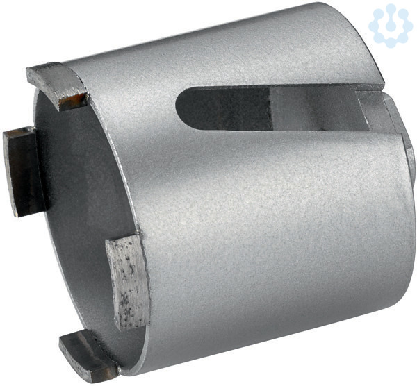 Diamant-Bohrkronen für Trocken- und Nassschnitt, passend zu allen handelsüblichen Diamanttrockenbohrmaschinen (Aufnahme M 16). Drehzahlempfehlung ca. 2000 U/MIN, Ausführung mit aufgesinterten oder gelaserten Diamantstollen. Diamantsegmente aus Diamantkorn- Bindung (Chrome-Bronze / Kobalt-Bronze). Die Bohrkronen sind mit einer Schrägschlitzung zur Kühlung ausgestattet, die Grundkörperhärte beträgt 38 HRC. Ausführung mit aufgelaserten Diamantstollen aus Diamantkorn- Bindung (Kobalt-Bronze), Arbeitslänge 65 mm. Für Dachziegel (mittelhart), Mauerstein und Kalksand-stein (weich / hoch verdichtet / hart). Durchmesser mm68