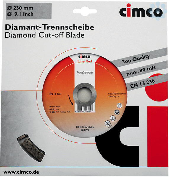 Diamant-Trennscheiben für Trocken- und Nassschliff, passend zu allen handelsüblichen Winkelschleifmaschinen und Mauernutfräsen (Aufnahme Durchmesser 22, 2 mm) Ausführung mit aufgesinterten oder gelaserten Diamantstollen. Diamantsegmente aus Diamantkorn-Bindung (Chrom-Bronze), Die Trennscheiben sind mit einer Schlüssellochung zur Kühlung ausgestattet und erfüllen die Kriterien der Prüfnorm EN 13236. Ausführung mit aufgelaserten Diamantsegmenten, Stammblatthärte 38 HRC. Für Bordstein, Pflaster, Verbundstein, Dachziegel, Mauerstein, Beton, Waschbeton, Leichtbeton, Altbeton (hart / armiert), Kalksandstein (weich / hart), Klinker (mittelhart), Quadroblock und Basalt. Durchmesser mm³30