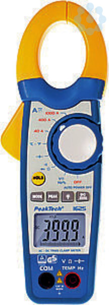 Dieses professionelle Zangenmessgerät kann Ströme berührungslos messen und verfügt über ein robustes, bruch-, feuersicheres und ergonomisch geformtes Gehäuse mit angespritztem Gummischutz. Die tropfenförmigen Klemmbacken erleichtern den Einsatz in industriellen und kommerziellen Umgebungen oder an schwer zugänglichen Stellen.-3 ¾-stellige, 15 mm LCD-Anzeige, max. Anzeige: 3999-Echt-Effektivwert-Automatische Bereichswahl-Minimalwert- u. Maximalwert-Haltefunktion-Messwerthaltefunktion-Hintergrundbeleuchtung-AC/DC-Strom: 1000 A-Spannungsmessung bis 600 V AC/DC-Widerstands-, Frequenz-, Kapazitäts- und Temperaturmessfunktion-Diodentest und Durchgangsprüffunktion-Abschaltautomatik-Leiterdurchmesser: 35 mm max.-Sicherheit: TÜV/GS, EN 61010-1. CAT III 600 V