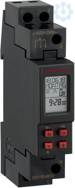 Wochenprogramm Verteilereinbau 17,5mm 1 Kanal / 46 Speicherplätze PC-programmierbar Abziehbares Bedienteil