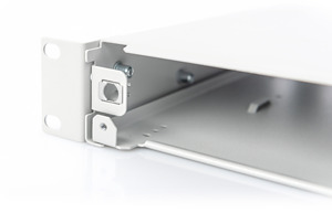 - Schnellverschluss-System - Trägergehäuse aus 1,0 mm Stahlblech, lackiert - Halterung für Spleißkassetten - Ausziehbares Basischassis mit ausgestanzten Pigtailfixierungen - Aufnahmen für M20/M25-Einschraubungen und Langlöcher für Kabel