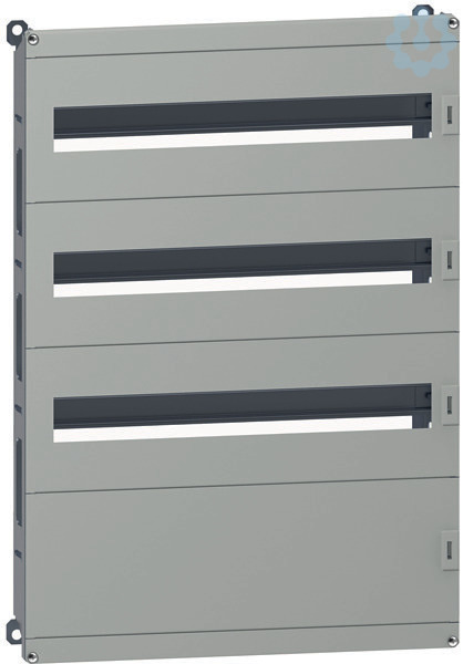 Modulares Gehäuse Typ DLM für SPACIAL WM-Gehäuse. H700 x B500 mm, 66 (18mm) Module. Vielseitige, modulare Verteileranwendung. Stufenschlitten, Vorderseite der Gehäusemontage. 1 glatte Frontplatte mit Montageplatte inkl. Stahlblech. Grau RAL 7035. 2 Abdeckungen, 1 Neutral-/Erdstreifen 2 x 16 mm² 5 x 6 mm², 3 Frontplatten (35 mm DIN-Schiene).