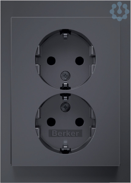 Doppelsteckdose SCHUKO, Abdeckpl., erh.BS, Berker K.5, edelstahl matt, lackiert. Doppelsteckdose SCHUKO® mit Abdeckplatte mit Klemm-/Schraubbefestigung. Inbetriebnahme nur bei montierter Abdeckplatte mit Erdungsbügeln. Unterputz-Installation, Material: Kunststoff, halogenfrei.