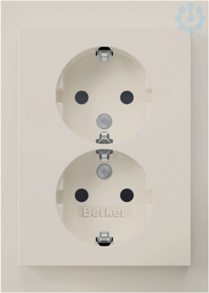 Doppelsteckdose SCHUKO, Abdeckpl., erh.BS, Berker K.1, polarweiß glänzend. Doppelsteckdose SCHUKO® mit Abdeckplatte mit Klemm-/Schraubbefestigung. Inbetriebnahme nur bei montierter Abdeckplatte mit Erdungsbügeln. Unterputz-Installation, Material: Kunststoff, halogenfrei.