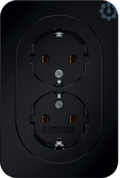 Doppelsteckdose SCHUKO mit Abdeckplatte, Berker R.1, schwarz glänzend