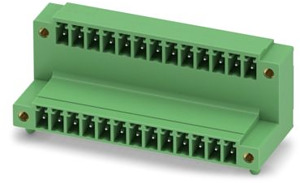 Leiterplattengrundleiste, Nennquerschnitt: 1,5 mm², Farbe: grün, Nennstrom: 8 A, Bemessungsspannung (III/2): 160 V, Kontaktoberfläche: Zinn, Kontaktart: Stift (male), Anzahl der Potenziale: 26, Anzahl der Reihen: 2, Polzahl pro Reihe: 13, Anzahl der Anschlüsse: 26, Artikelfamilie: MCD 1,5/..-GF, Rastermaß: 3,81 mm, Montage: Wellenlöten, Pin-Layout: Lineares Pinning, Pinlänge [P]: 3,5 mm, Stecksystem: MINI COMBICON, Verriegelung: Schraubverriegelung, Befestigungsart: Gewindeflansch, Verpackungsart: verpackt im Karton, Bei Kombination mit MCV-Steckerteilen ist jeweils ein MCVW- und ein MCVR-Stecker zu verwenden.