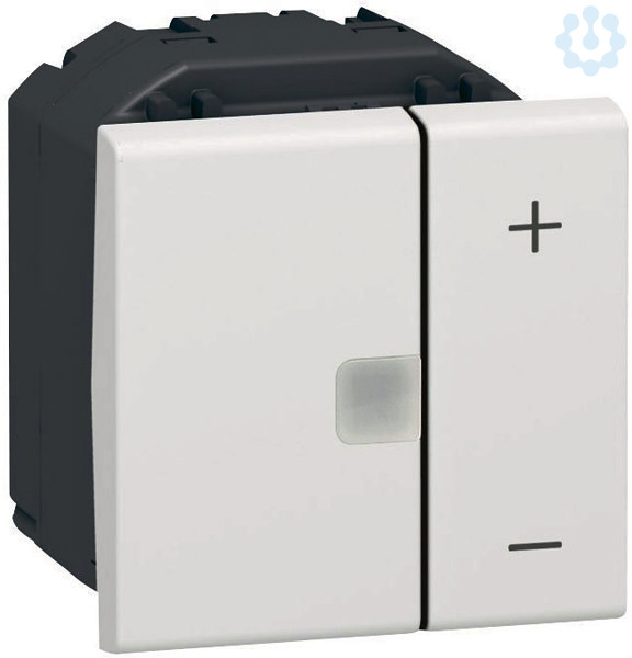 Legrand Doppeltaster Mosaic?, als Dimmer-Bedienelement, mit 4 zugeordneten Tasten für: ON/OFF (Ein-Ausschalten) bzw. +/- (Auf-Abregeln der Beleuchtung), Anschluss erfolgt über Busleitung in Verbindung mit Bus-Netzgerät Bestr.-Nr. 003680 (separat bestellen). 2,5-modulig, Weiß, zum Einbau in Hutschienenadapter DX3 Best.-Nr. 412950.