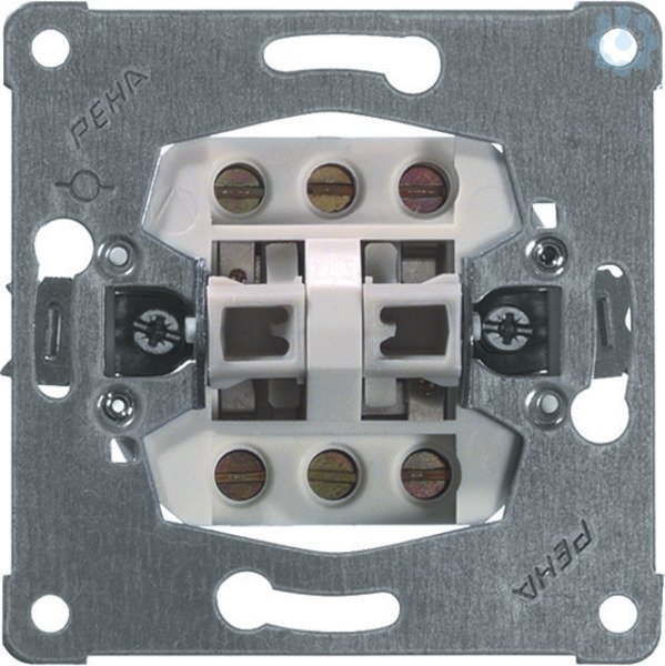 Doppeltaster für alle Unterputz-Programme 10 A 250 V~ Wechsel/Wechseltaster (Schraubanschluss) Auch als Jalousietaster mit elektrischer Verriegelung anschließbar.