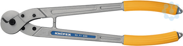 95 71 600 Drahtseil- und Kabelschere Für Drahtseile und Rundeisen, Cu-und Al-Kabel. Eignen sich zum Trennen von Freileitungsseilen mit Zugentlastungsdraht. Winklige Schneidspitzen ermöglichen ein Durchtrennen einzelner Seilstränge. Optimale Übersetzung für hohe Schneidleistung. Verschraubter Messerkopf, auswechselbar. Geringes Gewicht. - Schneidwert Cu-Kabel, mehrdrähtig: 150mm² - Schneidwert Cu-Kabel, feindrähtig (Durchmesser): Ø 14,0mm² - Schneidwerte Drahtseil (Durchmesser): Ø 14,0mm - Schneidwerte mittelharter Draht (Durchmesser): Ø 9,0mm - Schneidwerte Eisen (Durchmesser): Ø 9mm - AWG: 6?/ 0