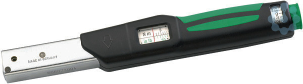 Drehmomentschlüssel, Auslösender Drehmomentschlüssel mit Aufnahme für austauschbare Steckwerkzeuge, einstellbar durch QuickSelect-Schnellverstellung (Sicherheitsverriegelung), Sichtfensteranzeige mit Nm und ft. lb bzw. in. lb, 2-Komponentengriff. Weiterbelastung nach dem Auslösen oder Belastungen entgegen der Funktionsrichtung, z. B. bei festsitzenden Schrauben, wirken nicht auf den Auslösemechanismus, der dadurch vor Beschädigung geschützt wird. Anzeigeabweichung ± 3 %. Größe der Werkzeugaufnahme in mm, bei Manoskopen (Innenvierkant) 9 x 12 mm. Lieferung erfolgt mit Bedienungsanleitungund Werk-Kalibrierschein. Nur verwendbar in Kombination mit Cimco-Artikelnr. 11 5114, 11 5116 und 11 5100, Skalenbereich: 220 Nm / 20-180 in. lb, Skalenteilung: 1 Nm/ 10 in. lb, Feinskalenteilung: 0, 2 Nm, Gewicht 740 g