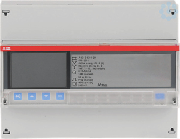 Drehstromzähler zur Messung eines Dreileiter- oder Vierleiter-Drehstromnetzes über einen Direktanschluss bis maximal 80 A. Folgende Werte werden über ein hinterleuchtetes Display mit bis zu 7 Stellen ausgegeben: Wirkenergie (Klasse 1) und Blindenergie (Klasse 2) für Import und Export, Leistungen, Ströme, Spannungen (L-L, L-N), Frequenz, cos phi, Power Faktor und Scheinleistung, (je Phase und gesamt). Die Kommunikation kann über die integrierte M-Bus oder Infrarotschnittstelle erfolgen. Der Energiezähler hat 4 individuell programmierbare Ein-/Ausgänge. Der Ausgang kann wahlweise als Impulsausgang oder als Alarmausgang verwendet werden (bis zu 25 Alarmwerte). Die Eingänge dienen zur Steuerung der Tarife bzw. zur Zählung externer Impulse. Zusätzlich erfasst der Zähler bis zu 4 Tarife. Durch die integrierte Uhr können zeitgesteuerte Funktionen ausgeführt werden. Der Energiezähler misst Ströme und Spannungen bis zur 16. Oberwelle und berechnet damit die gesamte harmonische Verzerrung. Zähler ist geeicht nach MID u