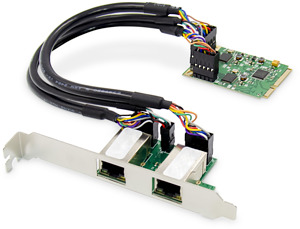 Diese Mini-PCIe Dual-Gigabit-Netzwerkkarte von DIGITUS® bietet mit Ihrem 10/100/1000 BASE-T-Ethernet-Controller höchste Perfomance für Netzwerkanwendungen. Ausgestattet mit zwei LAN-Schnittstellen (RJ45) erfüllt Sie die IEEE802.3u-Spezifikation für Fast Ethernet und die IEEE802.3ab-Spezifikation für Gigabit Ethernet. Außerdem wird Full Duplex Flow Control IEEE802.3x unterstützt sowie VLAN tagging. Die Karte kann für Slots mit voller und halber Bauhöhe genutzt werden. Entsprechende Slotblenden sind im Lieferumfang enthalten.