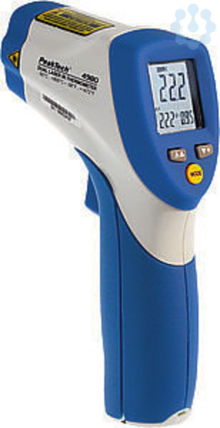 Neues, innovatives IR-Thermometer, mit dem per Knopfdruck über Infrarot berührungslose Temperaturmessungen durchgeführt werden können. Der integrierte Dual-Laser-Pointer erhöht die Zielgenauigkeit, während die hintergrundbeleuchtete LCD-Anzeige und die praktischen Drucktasten für eine bequeme und ergonomische Bedienung sorgen. Mit den berührungslosen Infrarot-Thermometern kann die Temperatur der Oberfläche von Gegenständen gemessen werden, die mittels traditioneller (Kontakt-) Thermometer nicht gemessen werden kann (z. B. ein sich bewegender Gegenstand, spannungsführende Oberflächen oder schwer zugängliche Objekte).-Messungen von -50°C bis 800°C-Messpunktverhältnis 20:1-Schnelle Messwerterfassung (150ms)-Emissionswert einstellbar von 0,10 bis 1,0-Automatische Messbereichswahl u. Anzeigeauflösung 0,1°C (0,1°F)-Einzelmess- oder Dauermessfunktion (umschaltbar)-Alarmfunktion mit visuellem (blinkende, rote LED-Beleuchtung)