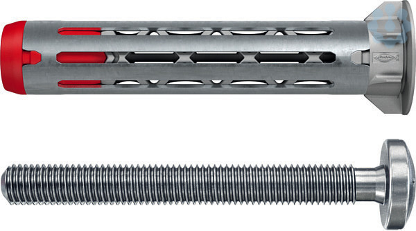 Der Hohlraumdübel DuoHM deckt mit nur einer Länge alle gängigen Baustoffdicken von 9,5-30mm ab. Durch die einzigartige Kombination aus Nylon und Metall, ermöglicht der DuoHM hohe Lasten und maximale Flexibilität in Plattenbaustoffen. Die Metallhülse klappt hinter dem Baustoff und presst sich an die Plattenrückseite, wohingegen sich der Nylon Grundkörper in der Platte verknotet. Die Montage des DuoHM erfolgt schnell und einfach mittels Akkuschrauber ohne zusätzliches Setzwerkzeug. Dies reduziert die Montagezeit um bis zu 50% im Vergleich zu herkömmlichen Plattendübel. Durch das metrische Innengewinde kann das Anbauteil mehrfach eingeschraubt und wieder gelöst werden. Neben der mitgelieferten Schraube, kann der DuoHM auch mit anderen metrischen Schrauben angewendet werden. Die Mitdrehsicherung aus Nylon schützt die Oberfläche des Baustoffs vor Beschädigungen. Aufgrund des schmalen Dübelrands ist der Dübel hinter dem Anbauteil nicht mehr sichtbar.